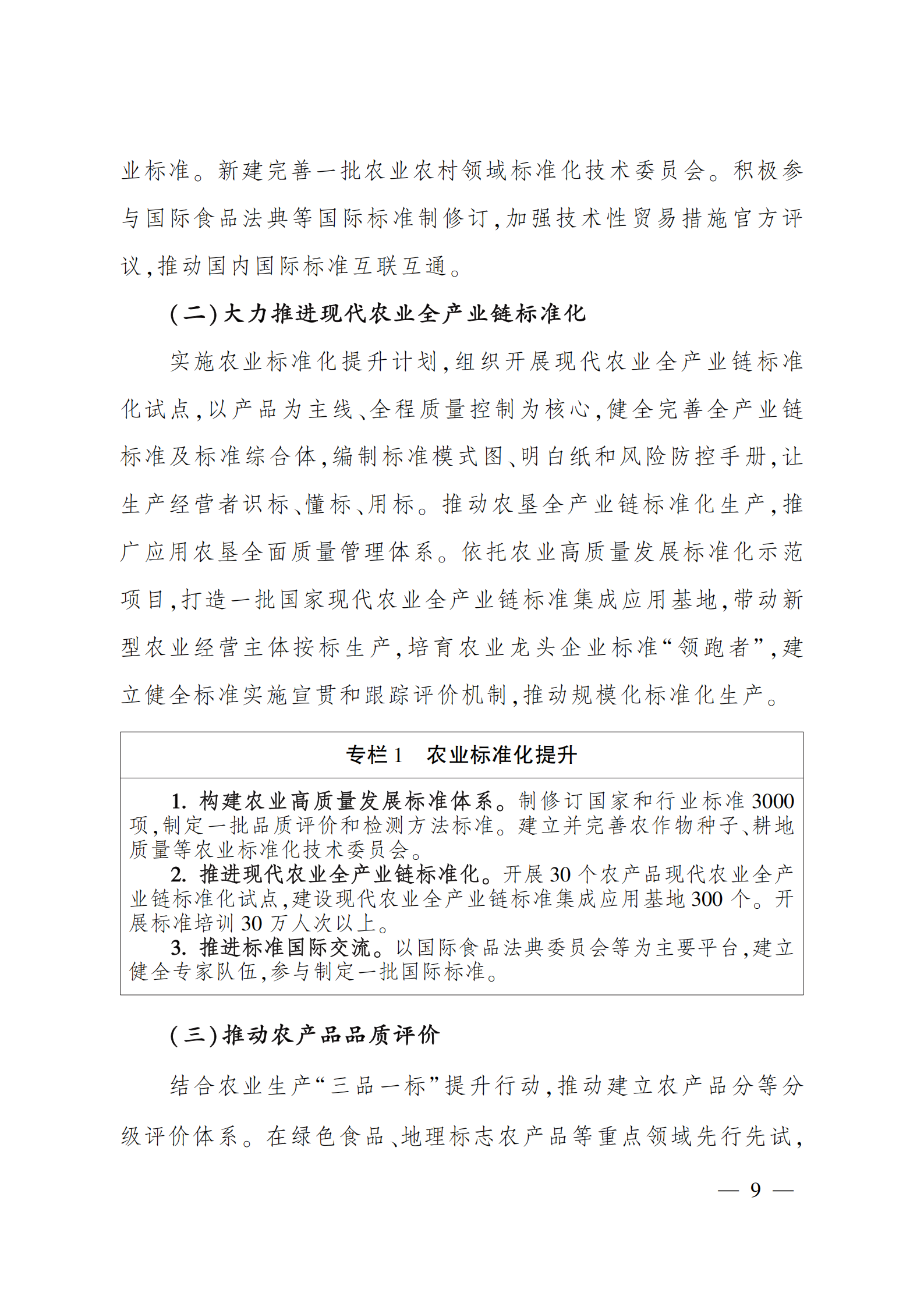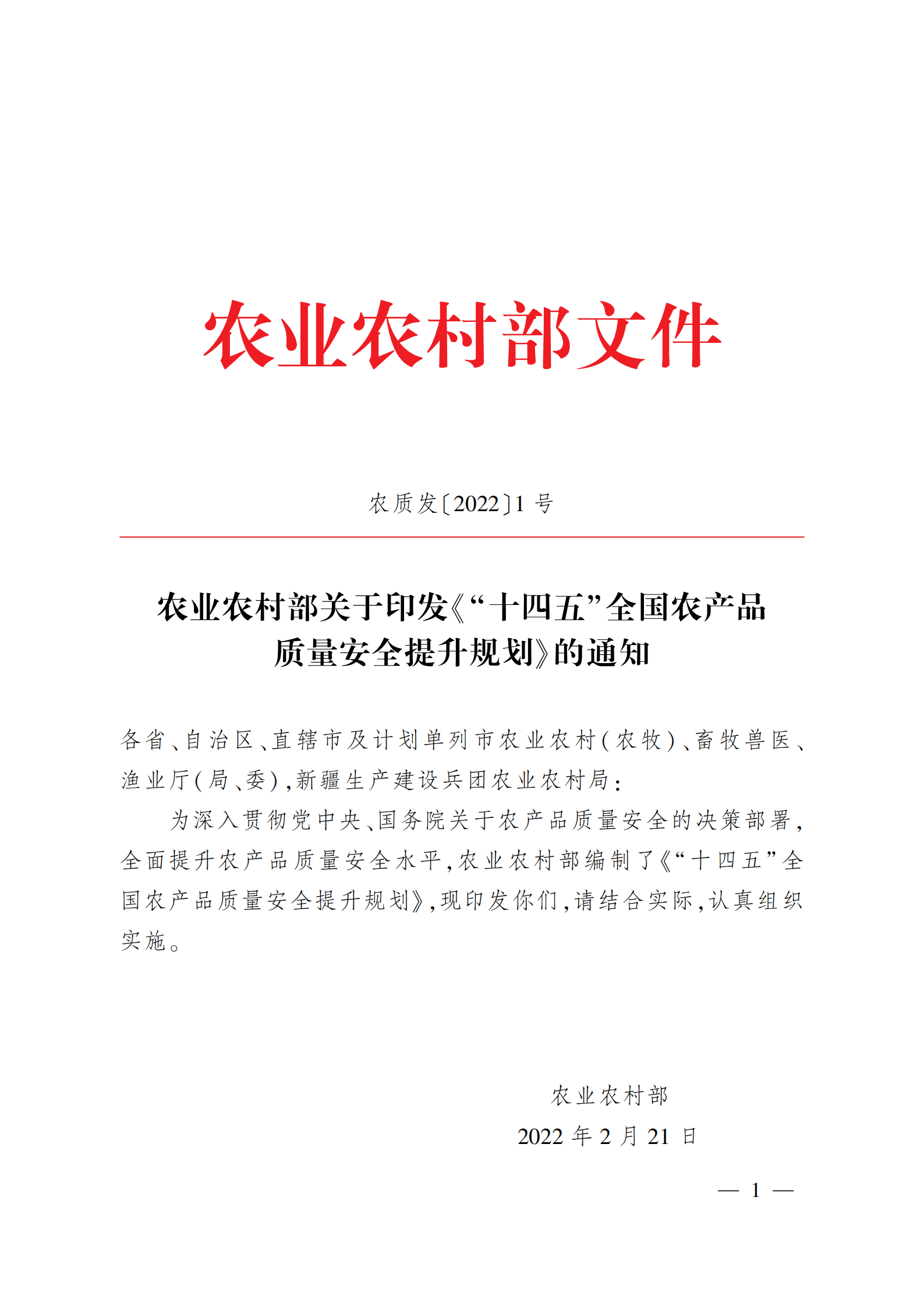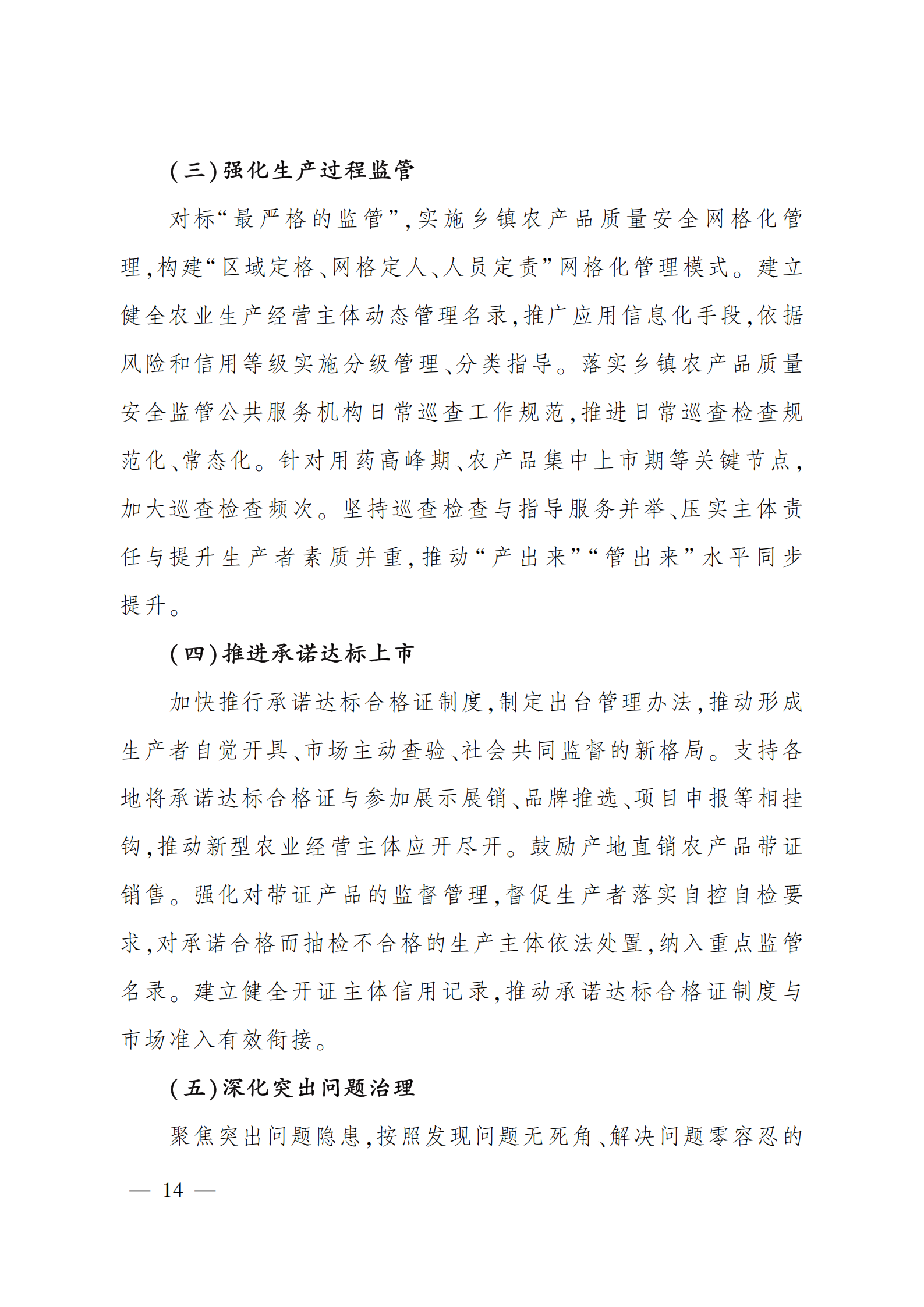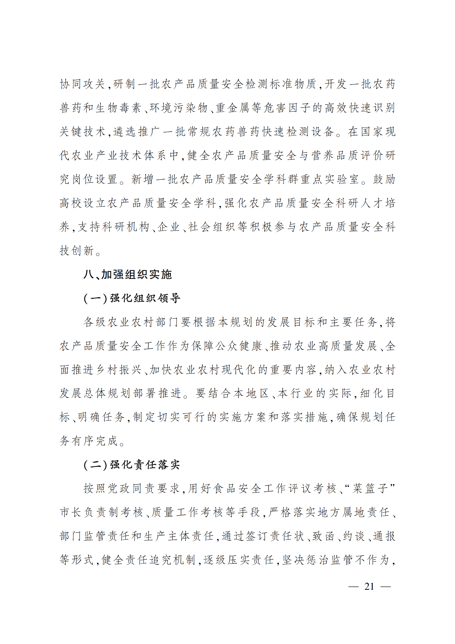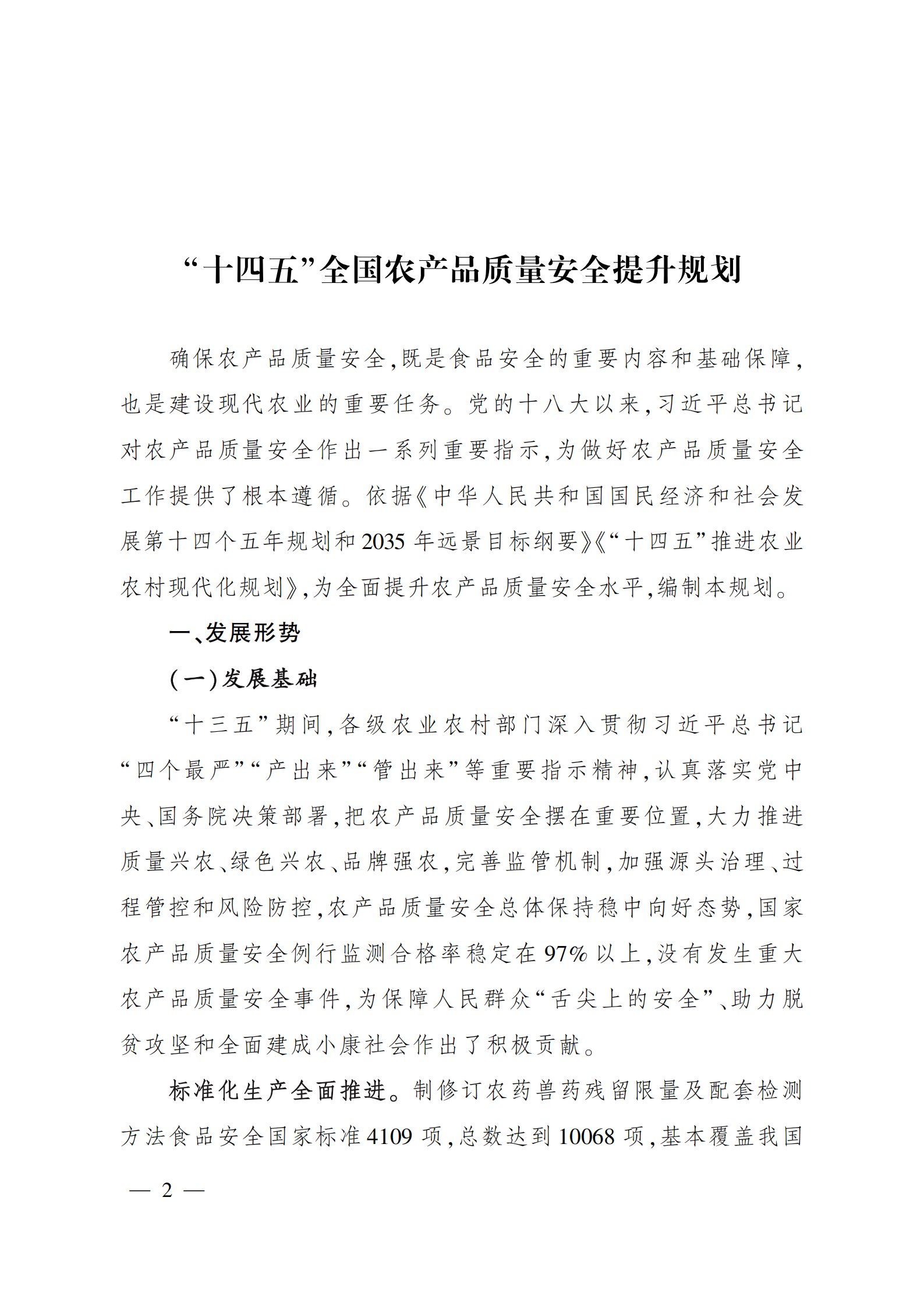 “十四五”全国农产品 质量安全提升规划