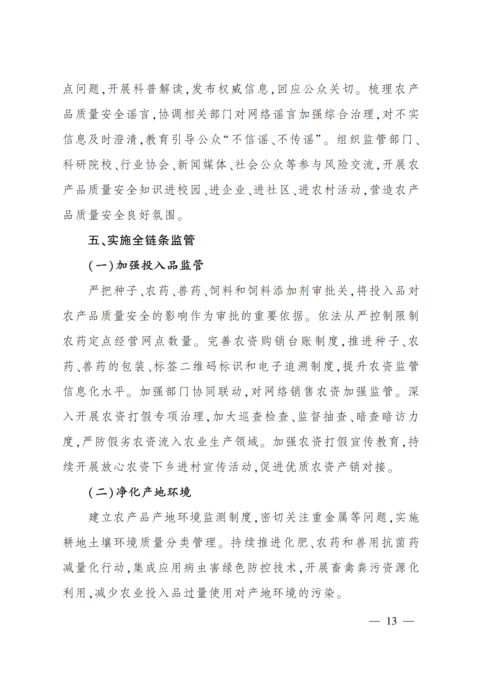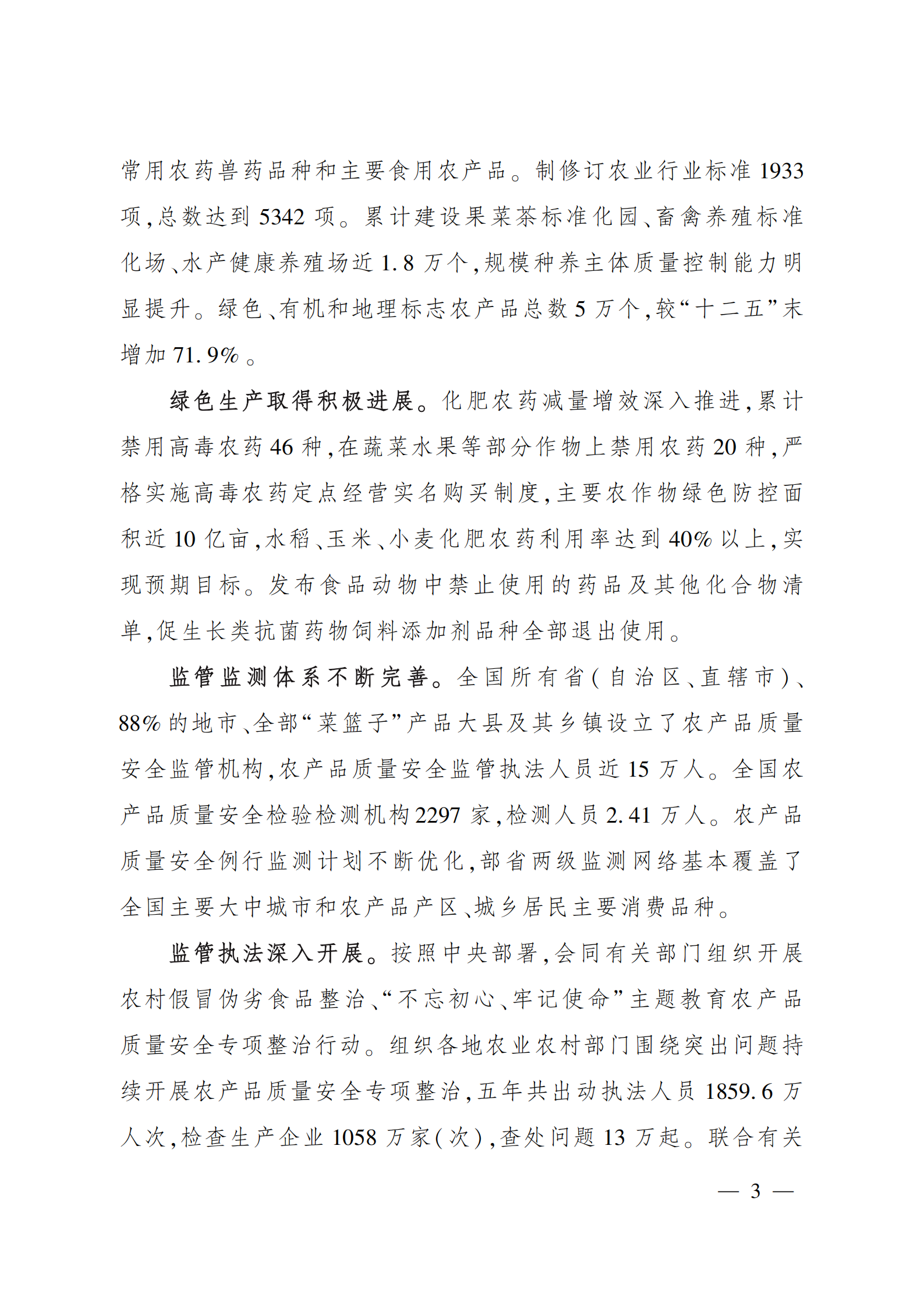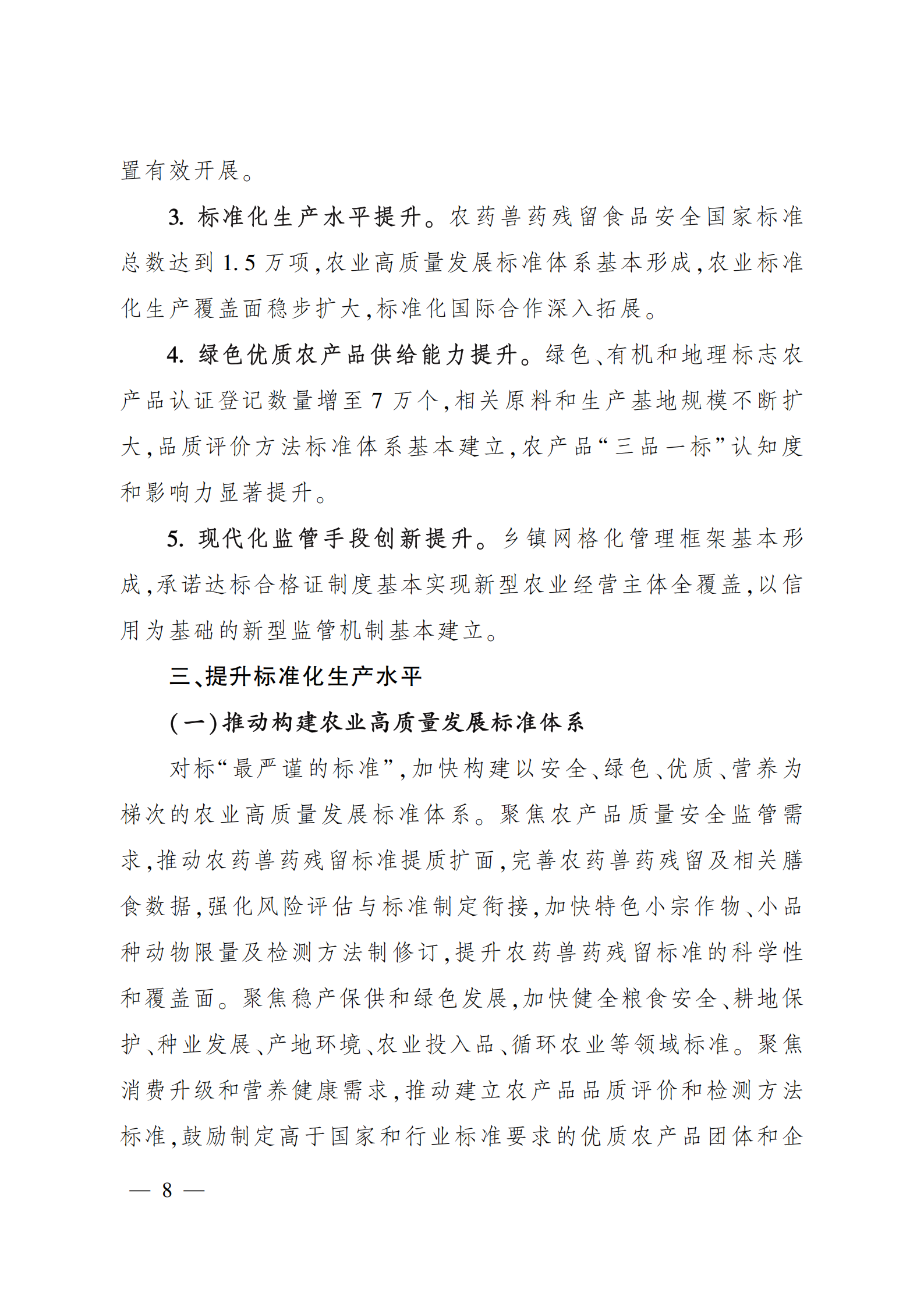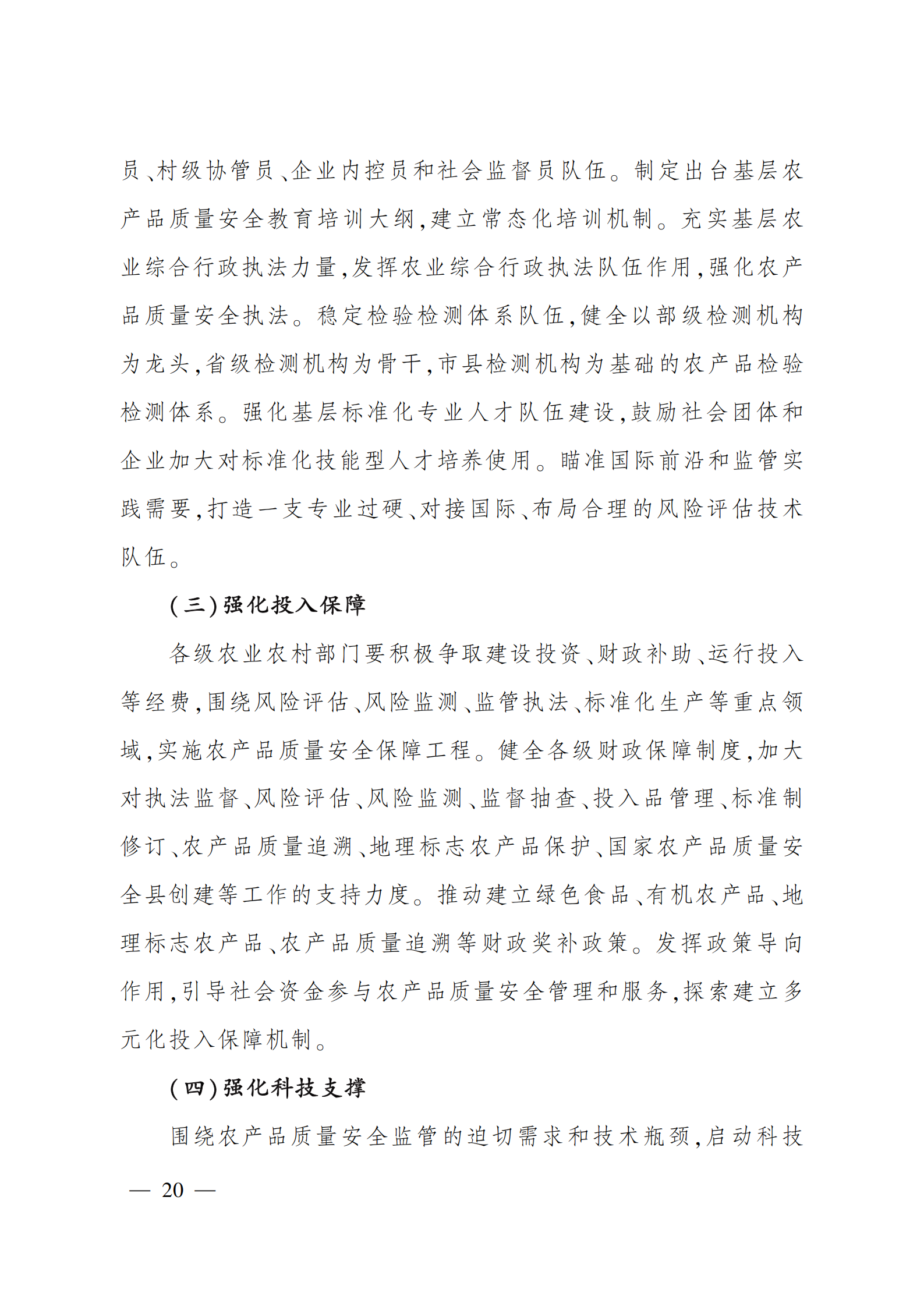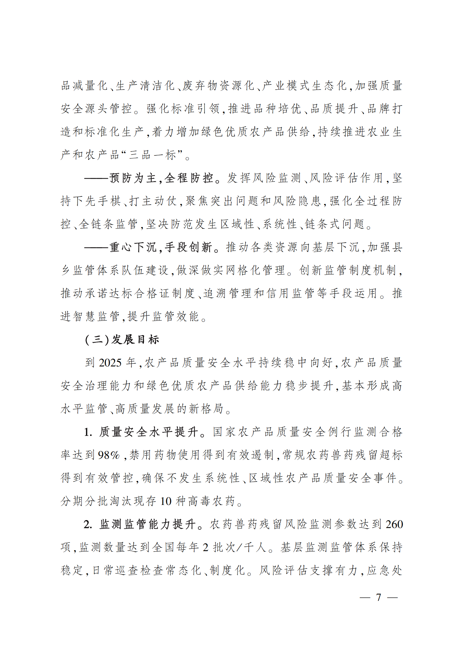“十四五”全国农产品 质量安全提升规划