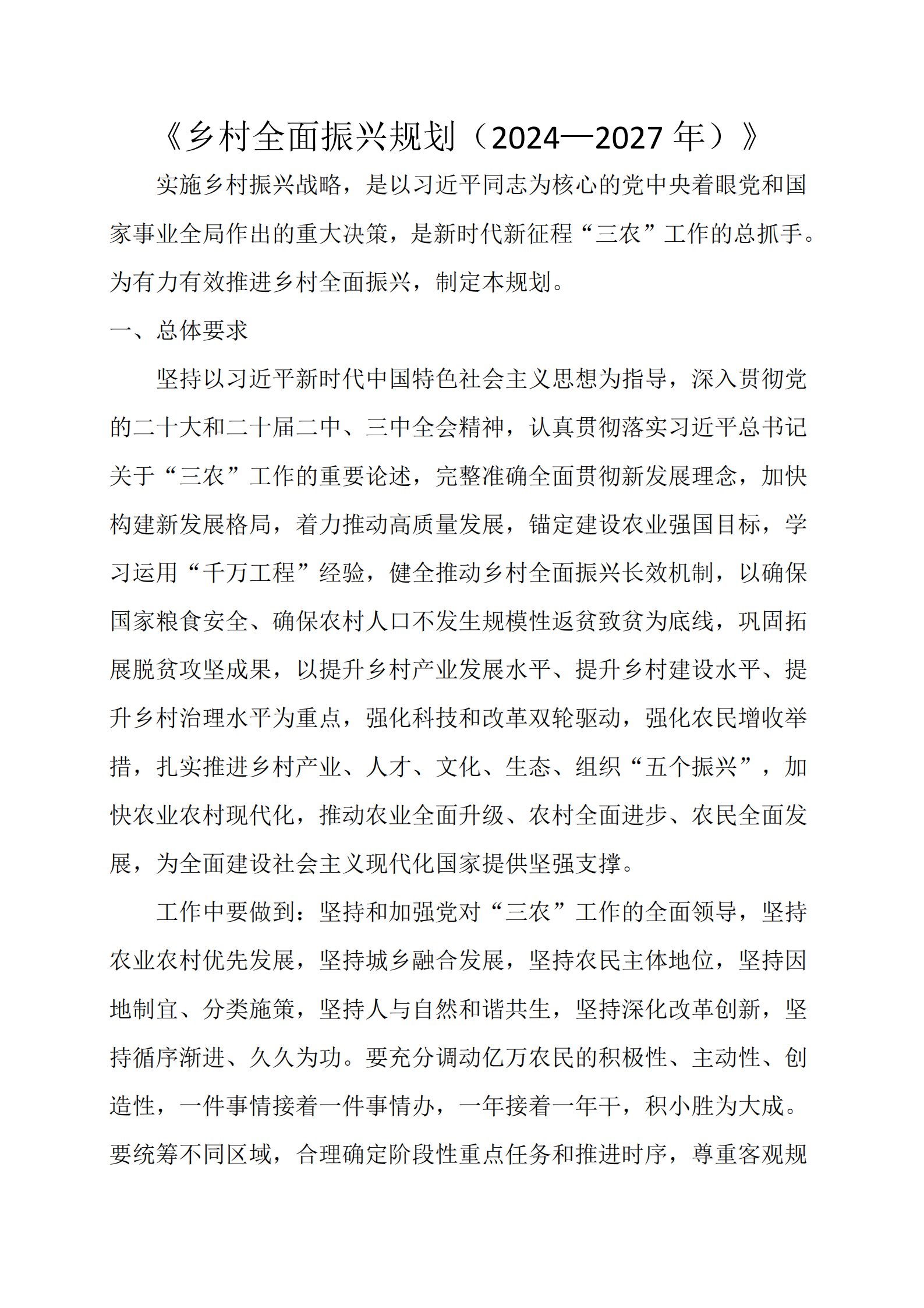 《乡村全面振兴规划(2024—2027 年)》