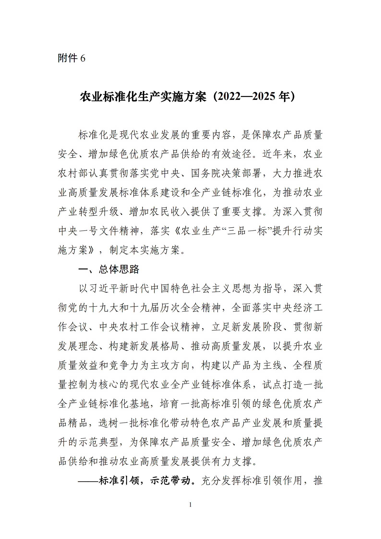 农业标准化生产实施方案(2022—2025 年)
