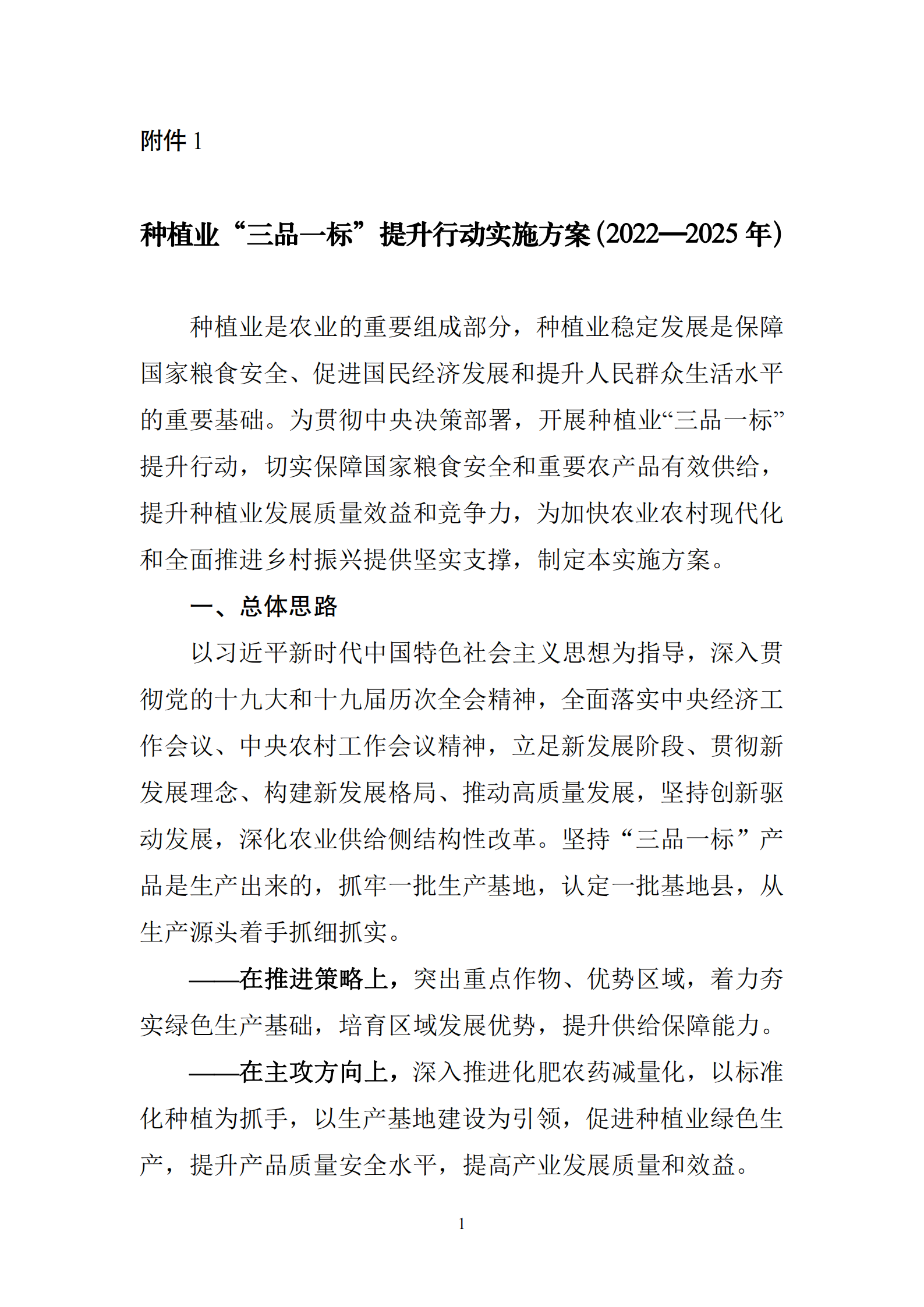 种植业“三品一标”提升行动实施方案(2022—2025 年)