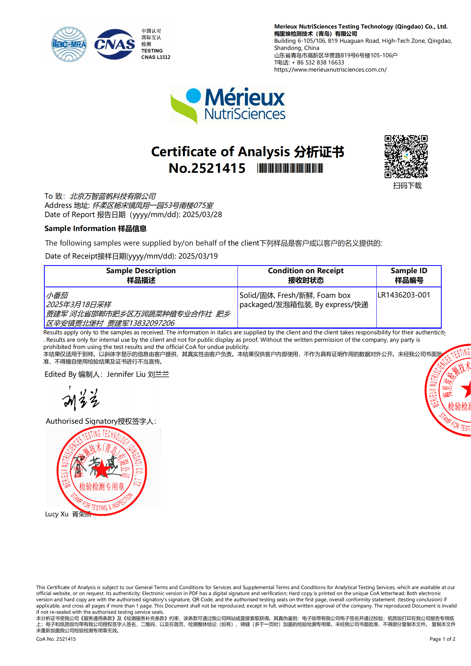 【检测报告】河北贾建军种植的番茄营养指标优良