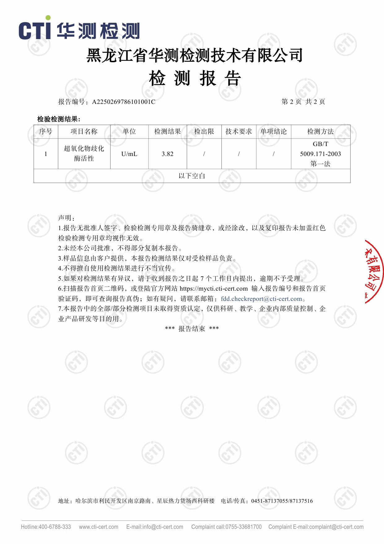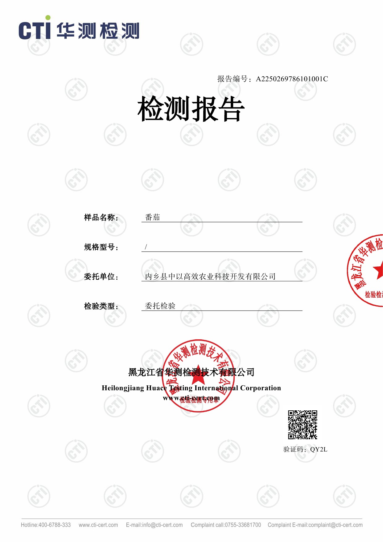 农产品检测报告
